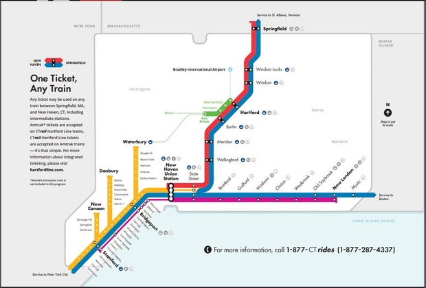 You can take a look at the route below or go to The Hartford Line page to see the schedules and find out what the fares are. Twelve trains will run on the weekends with more trains for commuters during the weekdays.