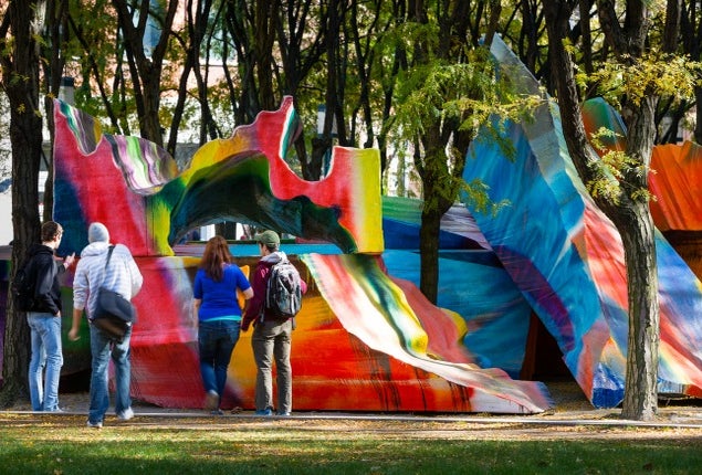 German artist Katharina Grosse has placed 18 large abstract sculptures among the trees at this Brooklyn plaza. The offbeat shapes feel otherworldly and the vibrant colors are playful and intriguing. Children will love exploring the nooks and crannies these works create.