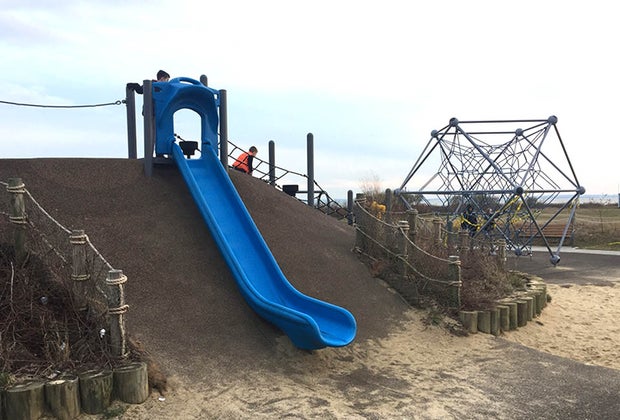 A former military airfield, this 187-acre park is named after James Miller, the first American aviator to be killed in action in World War I. Operated by the National Park Service, Miller Field is part of the Gateway National Recreation Area and listed on the National Register of Historic Places. There are an abundance of baseball, cricket, softball and soccer fields here, as well as a bocce court and picnic areas. The playground emphasizes climbing: There are a variety of monkey bars, a scalable lighthouse, and a web-like structure that is made for hanging around. Parents should be extra vigilant near one 12-foot-tall piece of equipment – older children will be tempted to climb to the top and getting back to the bottom is not an easy task. Visitors should also be aware that Porta-Potties are the only bathroom option here.