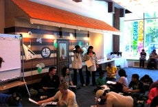 My daughter and I attended a design your own Muppet workshop. Designers from Sesame Workshop showed kids how to draw Ernie, Elmo and other popular characters step by step. They then handed out cheat sheets with common Muppet facial features, plus art supplies. The kids worked on the floor, but the Design Center will put out tables and chairs for workshops for older participants. The instruction and vibe is casual; kids are just encouraged to be creative and enjoy themselves.