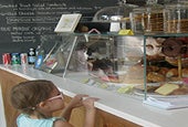 Lark Cafe was opened by Kari Browne, a journalist, and Lori Kranczer, a lawyer, both neighborhood moms with two kids under five. As such they paid attention to the details that make their cafe a hit with families. The dining area is funky and functional, with about a dozen wooden circular tables, meaning no sharp edges to fall on. There's lots of room for young tots to roam around. In addition to high chairs, there's a changing table in the bathroom, which doesn't feel cramped. Since there's no on-site kitchen, Lark's menu is tiny but appealing, with locally made treats like Dough doughnuts, Bagel Hole bagels, organic Blue Marble ice cream, Stumptown coffee for caregivers and a small selection of sandwiches. Beer and wine are also available during happy hour.