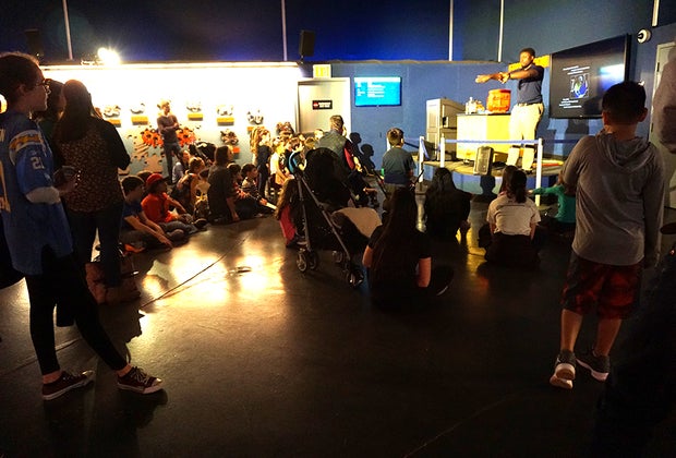 2. Kids Week: The Exploreum is also where you'll find the Intrepid's annual Kids Week programming, held during the NYC public school Midwinter Recess. This week is always chock-full of programming from the Intrepid and other partner programs, and introduces a variety of STEM topics to children in age-appropriate ways. Because my daughters aren't quite as into the museum's history as my son, this is always a great week to visit. They can do arts and crafts or catch a live show while he is happy to revisit all his favorite haunts in the other exhibition areas. During Kids Weeks past, we've participated in character meet-and-greets with Nick Jr. stars, crafted pinwheels and tops, watched puppet shows and magic demonstrations, and even met a menagerie of live animals. I can't recommend a visit during Kids Week enough.
