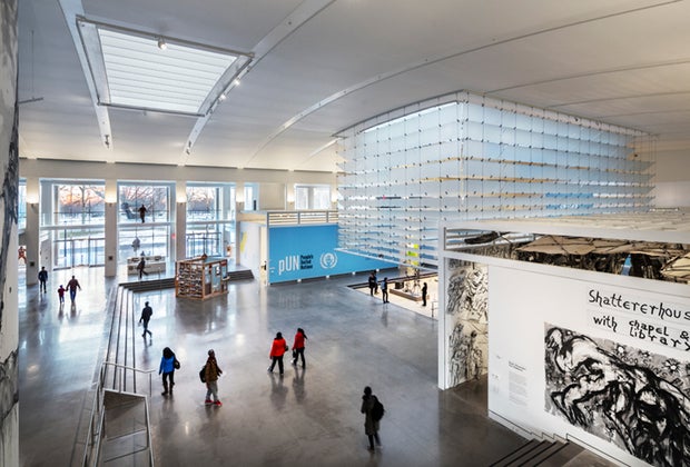 The museum has large open spaces for families to enjoy. These spaces are transformed into exhibitions where kids can look, listen, and (sometimes) touch the art. The Large Wall series, for example, features a 40-foot wall with year-long commissions by female-identifying artists. Another spacious room lets museumgoers hang out under its skylight in a large, carpeted area full of thought-provoking creative expression.