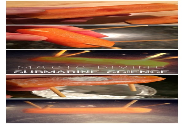 Troubleshooting: If your submarine rolls to the side, the bubbles will escape and your sub won't float, it will just look like an old man letting out a fart. To fix this try adjusting the positioning of the toothpicks which can act kind of like ballasts to help the carrot float more evenly.If you try this WeeWork project, share it on Facebook, Twitter or Instagram and tag @mommypoppins so we can see your creations too!