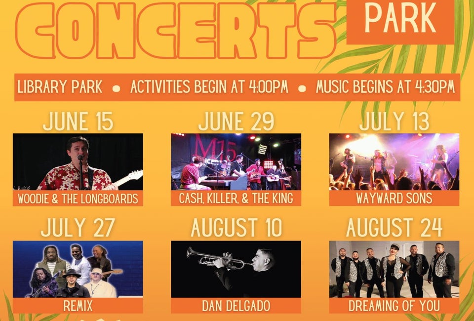 El Segundo's Summer Concerts in the Park are held at Library Park. Extra fun includes pre-show kids' crafts, games, and giveaways in the Gazebo. Food trucks are on-site with food for purchase.