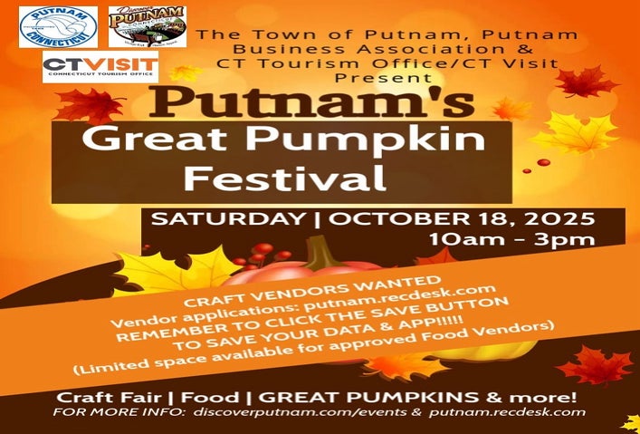 Join Putnam’s Great Pumpkin Festival — brought to you by the Town of Putnam, Putnam Business Association, and CT Visit. Enjoy a craft fair, food, GREAT pumpkins & more!