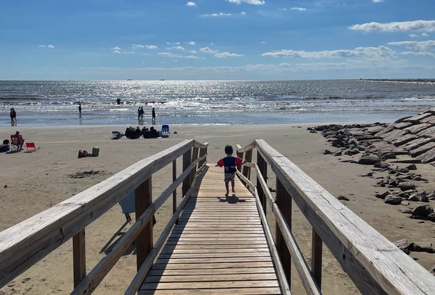 A family-friendly beach with playgrounds and picnic areas. It’s calmer than Galveston.