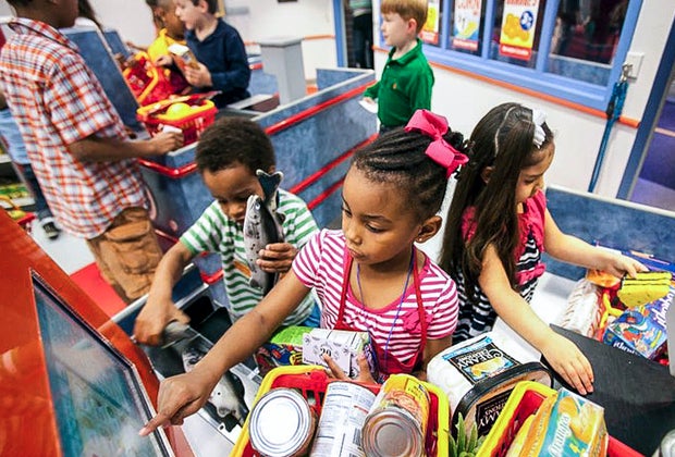 Learning and playing inside the Kidtropolis exhibit.