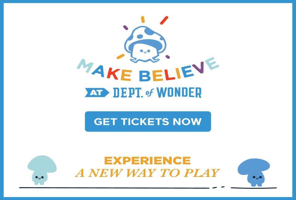Make Believe at Department of Wonder provides parents the opportunity to play alongside their young children, giving them the chance to think outside of the box, practice critical thinking, and experiment with new ideas.