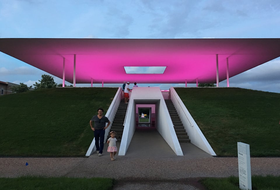 Up to 120 guests can gather on stone benches located on each level of the Skyspace to view the changing colors of the sequence and the effect the lights have on the dusk or dawn sky. The 40-minute sequence, accompanied by nothing but silence, can also be appreciated from the grassy lawn that surrounds the structure. This might be the best place for little ones who haven't quite mastered their whisper or "inside voice," because although the Skyspace is free and open to all ages, the atmosphere is definitely one of serenity and quiet reflection.