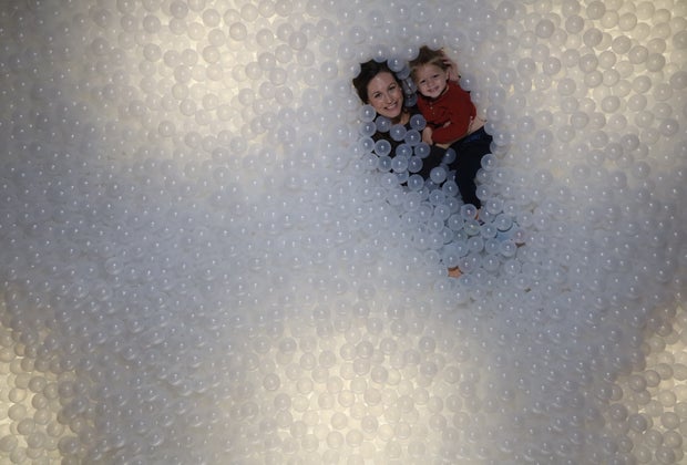 Color Factory's final room is a showstopper - a massive ball pit inspired by NASA and Houston's galactic legacy. There are several photo stations here and an opportunity for a full-body workout. The ball pit is fairly deep in that it swallowed my 3-year-old, so we trudged through with him on my back.