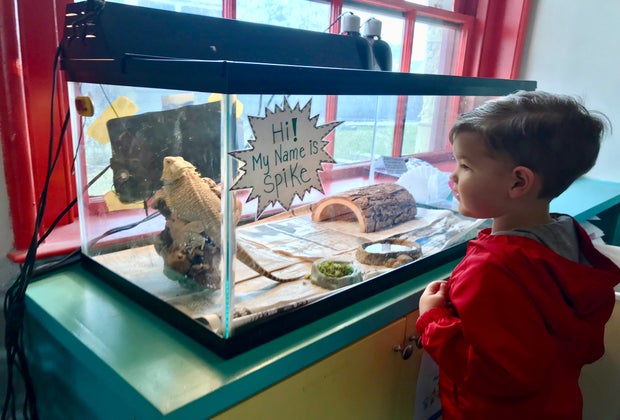 Visiting with Spike, the museum's pet bearded dragon.