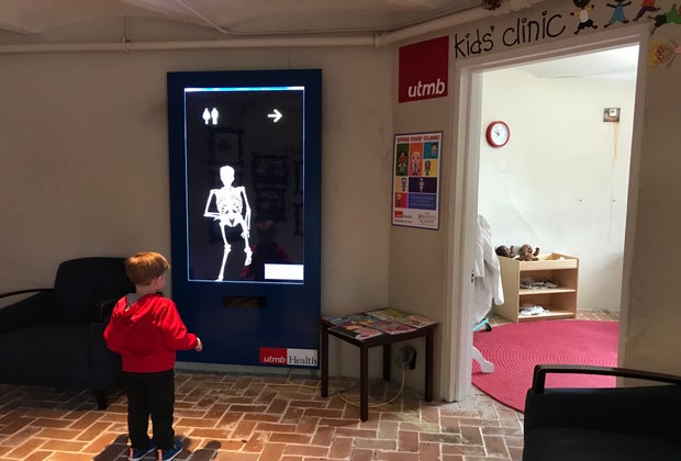 Taking a look at how our bodies work outside the kids' clinic exhibit.