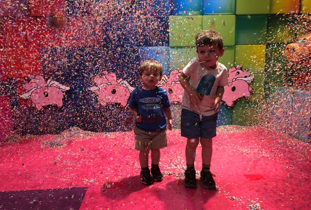 The most fantstical rooms are the confetti room - where pigs "poop" out confetti and where you can take a selfie under a confetti shower - and the marshmallow pit, where you can swim through a massive pit of foam marshmallows.
