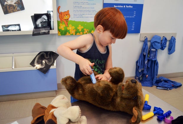 Photo by the author. Kids get a kick playing grown up in Little Town, like caring for animals in the veterinarian's office.