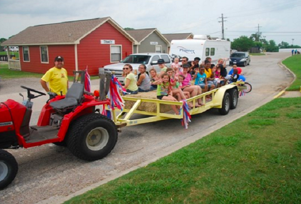 Taking a trailer ride around the campsites with the kids/Photo courtesy of Lake Conroe/Houston North KOA