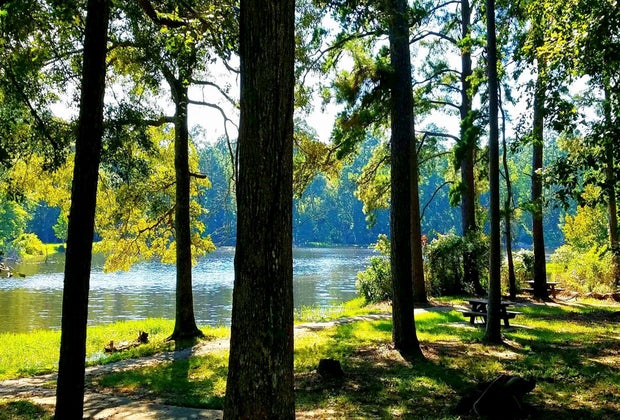 For hiking, fishing, and exploring, head over to Double Lake Recreation Area in the Sam Houston National Forest. The 23-acre campground offers sites for cabins, tents, RVs, and trailers, as well as the option to choose primitive sites, water-only sites, and sites with both water and electric. Families wanting to be right on the water can reserve a waterfront site, and the lake is stocked with catfish, bream, and bass for fishing. Site prices vary based on the type of site you select and one vehicle is included with the site fee. Two vehicles are included with the site, and dditional vehicles are charged $9 per night.