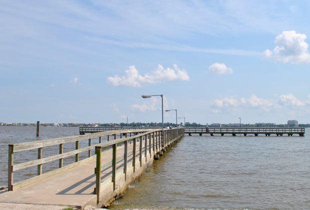 Reel in a big catch on this t-shaped fishing pier.