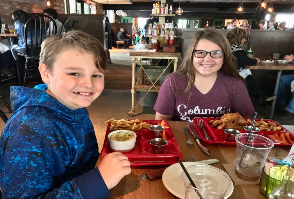 We love dining on the patio with kids at Punk's because the kids can play in the grassy area right outside after our meal. They offer brunch on Saturday and Sunday, however, their Sunday menu is quite a bit larger and includes an expanded biscuit and egg plate selection. No matter which day you choose to brunch, you'll find Southern-style favorites made with homemade biscuits, deep fried chicken, and lots of creamy gravy.