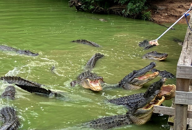 Feeding time at the Gator Country alligator preserve. Photo courtesy of Sarah Banks.
