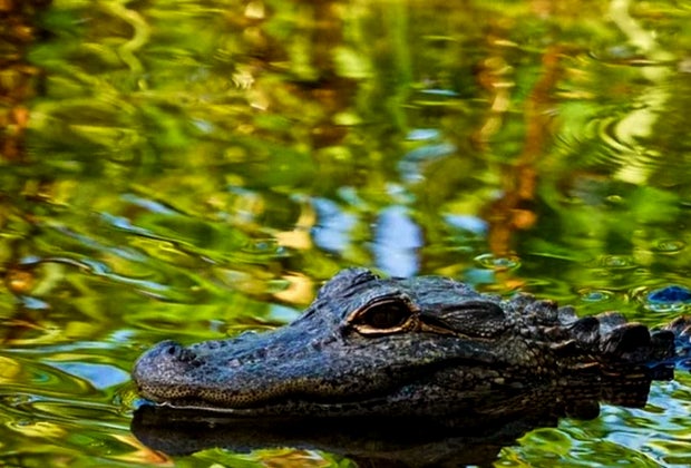 Want to know more about alligators? The American alligator usually grows 6-16 ft and can live to over 40 years old in the wild. They eat small mammals but can go a year or so without eating. If you only see its head peeking from the water, you can estimate its length as every inch between its eyes and nose is equal to one foot in size. The incubation temperature of eggs determines whether the alligator is a boy or a girl: hotter temperatures result mostly in males, with cooler temperatures producing more females. Download this American Alligator Fact Sheet for further information before you go out on your trip.
