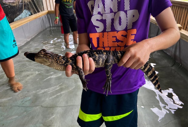 - Bring a change of clothes if your kids will want to go in the wading tank. As they bend down to pick up and release the small alligators, it’s not easy to stay dry.