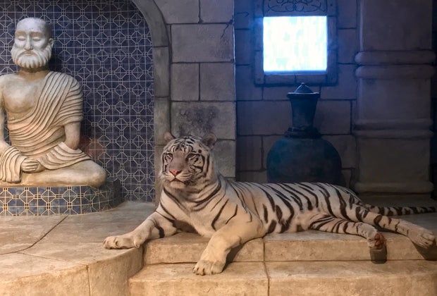 Plan to spend at least an hour to fully explore this level. Large floor-to-ceiling viewing tanks make it easy and exciting for smaller kids to get really up close and personal with the more than 200 species of fish. You'll also find alligators, lizards, snakes, frogs, and sea horses in higher viewing areas. In addition to the marine life, the Aquarium is home to majestic white Bengal tigers. The tiger we saw was quite active and much to the delight of kids and cameras, strutted continuously in front of the glass viewing window. Rounding out the exhibit are the stingrays. My toddler was content to look at them, but petting and feeding are the highlights of this attraction. Don't worry - proper feeding techniques are displayed on signs above the tanks and a hand-washing station can be found near the exit.