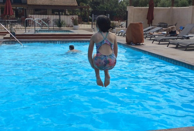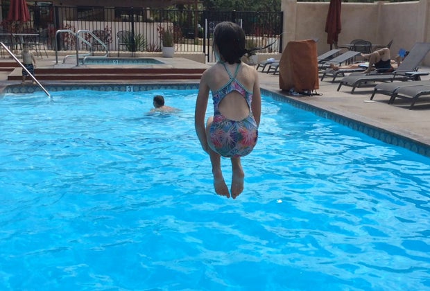 Jumping in the salt water pool