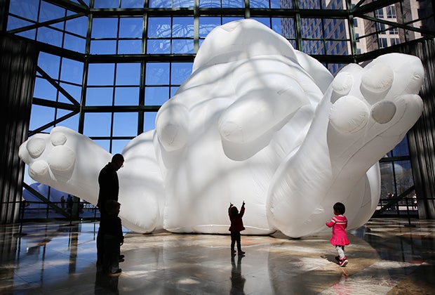 How cool is this? Seven massive, illuminated, bunny sculptures just went on display at Brookfield Plaza. The exhibit Intrude, by Australian artist Amanda Parer, helps to celebrate the one-year anniversary of Brookfield's reopening. Kids won't care why these larger-than-life hares are here, but they will enjoy getting an up-close view of them. The exhibit will be touring the United States, stopping also in Denver, Los Angeles and Houston, but two of the rabbits were commissioned by Brookfield and haven't been seen before. Three of the rabbits will take over the building's soaring atrium and the rest will be inflated outdoors on Waterfront Plaza in good weather. Try to see them at dusk when they should look otherworldly, but hurry they are only on view through April 30.