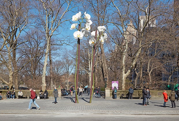 This pair of pristine blossoms welcomes visitors to Manhattan's most celebrated green space. Oversized and perfect at 28 and 34 feet tall, they were created by German artist Isa Genzken and are meant to illustrate how these plants have become harbingers for contemporary culture. No longer a rare bloom, perfect orchids can be purchased in the grocery store.