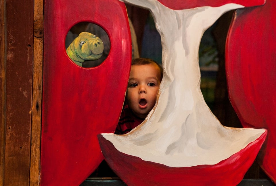 While the museum is on the small side and an older child can easily get bored there quickly my 3 ½ year old loved it! She happily explored for hours playing make-believe in the life size cars and space ships. She built houses with the huge blocks and put on a “show” in the music area. The main new attraction is an exhibit called Middleshire, a medieval castle-building village, which replaced the old Cornfield exhibit. The entire museum is full of color and the walls are adorned with beautifully painted murals. It is such a magical place for creative exploration.