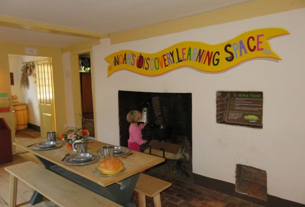 The original four-room house is beautifully preserved and includes many authentic items: furniture, housewares, and clothing from the era. Our visit lasted about an hour and a half. We skipped the orientation film playing in the classroom replica, but did spend quite a bit of time enjoying the hands-on activities in Noah's Discovery Learning Space, pretending to bake bread, cook vegetables, and gather the family around the table. Challenging themselves to carry a pretend bucket of water (a typical chore for children their age) was probably the highlight of my girls' visit.