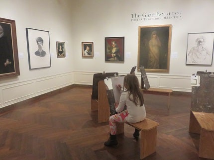 On the upper level, you will find another kid-favorite: a portrait gallery with easels, mirrors, and other supplies where visitors can attempt their own images. Nearby, my children also oohh’d and aahh’d over an oversized ship replica and tried their hand at learning how to tie sailor knots. After about two hours, my little art scavengers left the museum happy, especially after the friendly front desk staff rewarded their completion of the I Spy challenge.