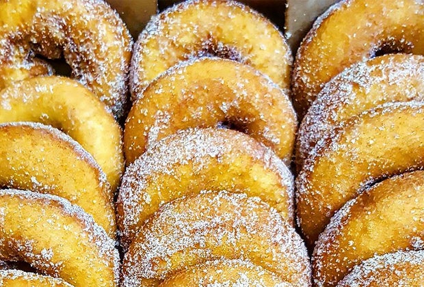 Indulge in homemade apple cider doughnuts at Ochs Orchard in Warwick.