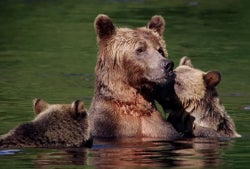 In fact not much that is terribly worrisome happens to the furry little family. The editors seemingly had to drum up some peril through the narration, just to make sure that we worry at least a little. There are one or two instances of a cub losing track of Mama Bear for a while before being found again, but nothing worse than you'd find in a classic board book. A few times angry, snarling bears face off (though even in anger the darn things look cute), and once or twice a skulking wolf slinks by menacingly. The moment that our kids found the most worrying was an impressively shot avalanche, close to the beginning of the film. Overall, The Lion King is a whole lot scarier - though viewers with strong personal attachments to salmon might find the film a bit disturbing; the bears' happy ending requires quite a few salmon to die.