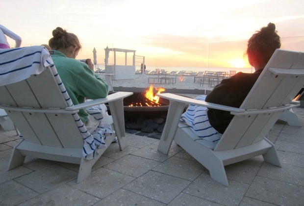 Top photo: Cozy up to the fire pit at the Edgewater Beach Hotel in Naples, Florida, after a dip in one of its two heated pools. Photo by Mommy Poppins staff.