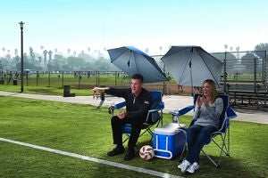 You want a seat? We've got a seat! The Sport-Brella Chair may look like a standard portable fold-up chair, but it also has a 360-degree swivel umbrella which can be attached on either side and swiveled at the press of a button for complete coverage from any angle. Nice, right? The umbrella opens up to 46-inches and has a UPF 50+ lining. The chair also has a built-in cup holder, bottle opener and a pouch, and it collapses quickly into a compact carry bag. $39.99.