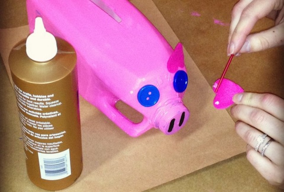 I love piggy banks! There is nothing more exciting than the anticipation of watching it fill up and daydreaming about what you will do with your extra cash. Kill two birds with one stone... teach kids with this super easy and affordable craft about saving money and how cool it is to recycle. Here's an easy project that is not going to break the bank (sorry).
