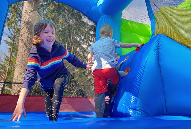 The Bounce House Castle is sturdy enough for big kids and the slide adds to the fun. Photo by Mommy Poppins