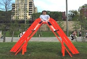 Please Touch the Art stretches from the lawn near Jane's Carousel just south of the Manhattan Bridge, all the way down to Pier 6. The installation consists of three distinct works. "Modified Social Benches" is a series of 16 brightly colored benches that are intentionally challenging to sit on due to their bent, twisted and curved shapes. My kids got a kick out of these, especially the ones that operated more like slides than benches. Each time they spotted the electric orange-red of a new one in the distance, they screamed, "More art!" and ran to figure it out.