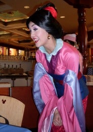 Recent breakfasts have included Jake (of the Neverland Pirates) for Peter Pan, Vanellope from Wreck-It Ralph, Merida from Brave and the adorable Boo for Monsters Inc. For Mulan screenings, the honored guest is none other than Mulan herself. Though she spends the majority of her film in warrior garb, she dons a traditional Chinese gown for breakfast.