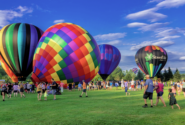 Glimpse (and maybe even ride) in a hot air balloon in July. Photo courtesy of Stowe Balloon Festival