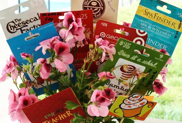 Create a bouquet loaded with fresh flowers and gift cards. Photo courtesy of giftcard.com
