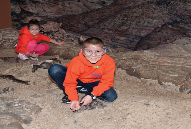 Visitors dig for fossils in the Big Dig. Credit: Will Klein/courtesy of The Academy of Natural Sciences