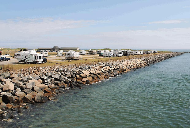 Open up your camper door and enjoy panoramic views of the Atlantic Ocean at Hampton Beach State Park. This RV-only campground has 28 sites directly located on the New Hampshire coast. The beach is the main attraction at this popular state park, and campers can enjoy swimming, fishing, and relaxing on the seashore. The park hosts an impressive list of weekly events, including nightly concerts, fireworks, and other family-friendly events.