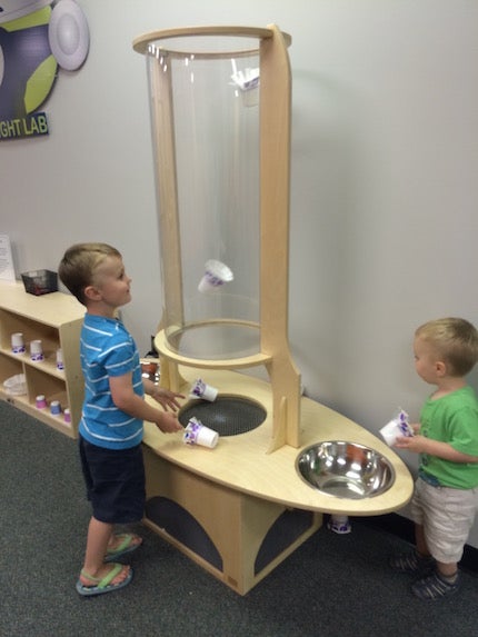 All of the hands-on highlights are within 10 yards of each other. It's pretty no-frills, but kids don't care about frills. They want to launch a paper cup rocket in an air tube, race cars down a shoot, and try to build a PVC pipe run actually leading a wooden ball—plunk!—into the plastic cup. It brought me joy to hear my 4-year-old excitedly say, "I got an idea! I got an idea! I got an idea!!!"