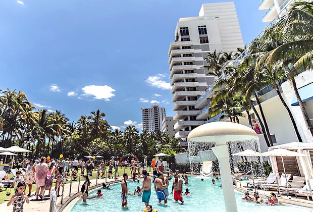 Kids and parents love the zero-entry pool at the Fontainebleau Miami Beach.
