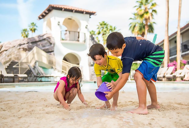 Omni Rancho Las Palmas Resort & Spa's Splashtopia has a sandy beach, water slides, a lazy river, and more.