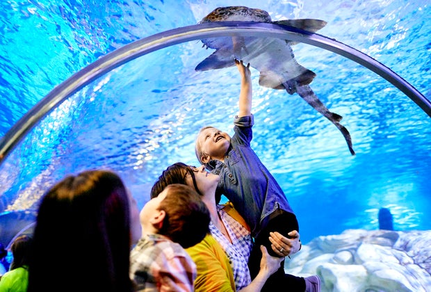 3. See sharks, turtles, and rays up close at Sea Life Aquarium. Walk through a 300-foot undersea glass tunnel and feel starfish in the touch pools. Kids can collect stamps at interactive stations throughout the tour of this fun, perfectly sized aquarium right in the middle of the mall.