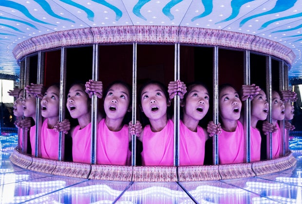 A young Wonderlab visitor is reflected inside the Infinity Boxes at the London Science Museum. Photo ©Lee Mawdsley, courtesy of the Science Museum Group